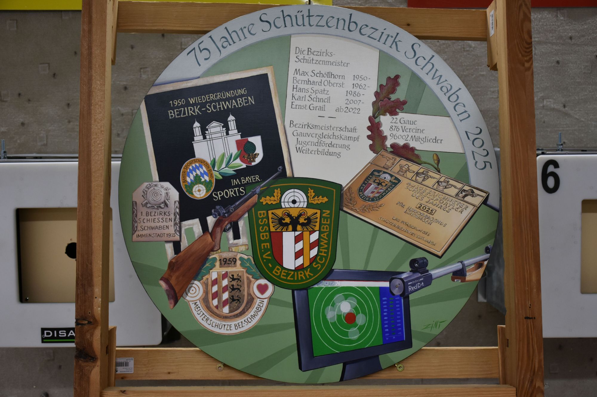 Der Schützenbezirk Schwaben begeht in diesem Jahr sein 75-jähriges Bestehen. Aus diesem Anlass wurde eine besondere Jubiläumsscheibe ausgeschossen, die das historische Wirken des Bezirks würdigt und als sichtbares Zeichen schwäbischer Schützentradition geschaffen wurde.
