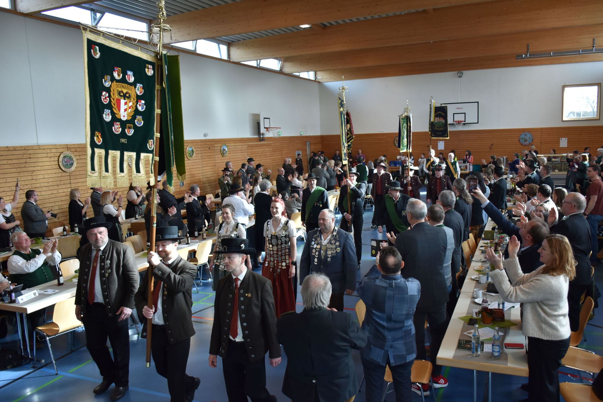 Nach dem festlichen Einzug der alten Schützenkönig:innen unter Begleitung der Standarten und Fahnen, eröffnete unser Präsident Ernst Grail mit seinem Grußwort die Veranstaltung gegen 14:30 Uhr, indem er alle Gäste sowie Ehrengäste herzlich begrüßte.