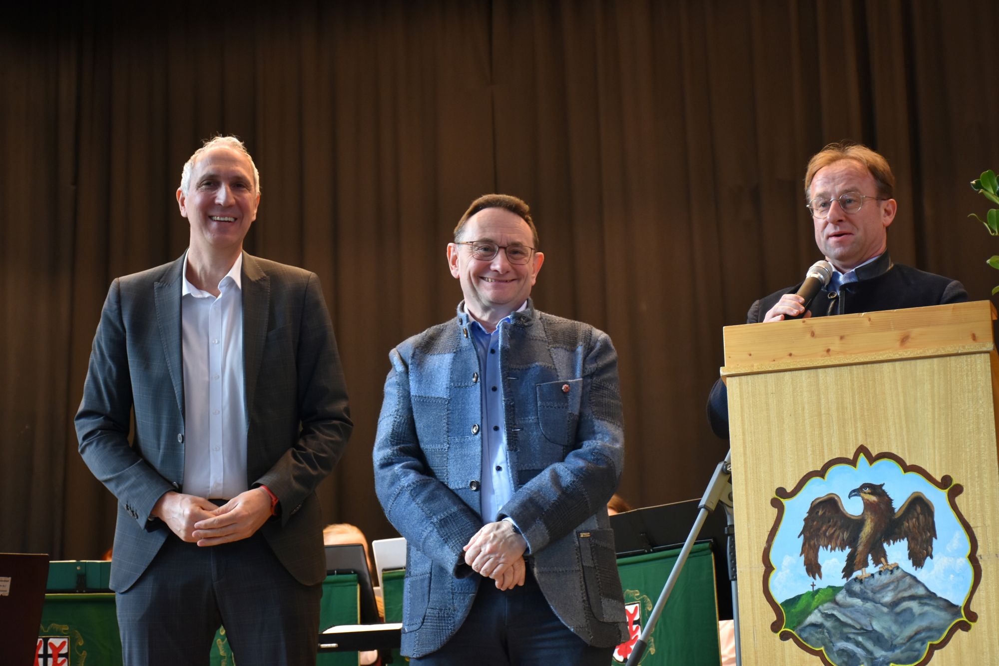 Nach dem gemeinsamen Einzug der Fahnenabordnungen und der Königinnen und Könige, hießen Präsident Ernst Grail, Schützenbezirk Schwaben und Carsten Immler, gastgebender Gauschützenmeister und zugleich Vorstand von Maria-Thann, die Gäste willkommen.