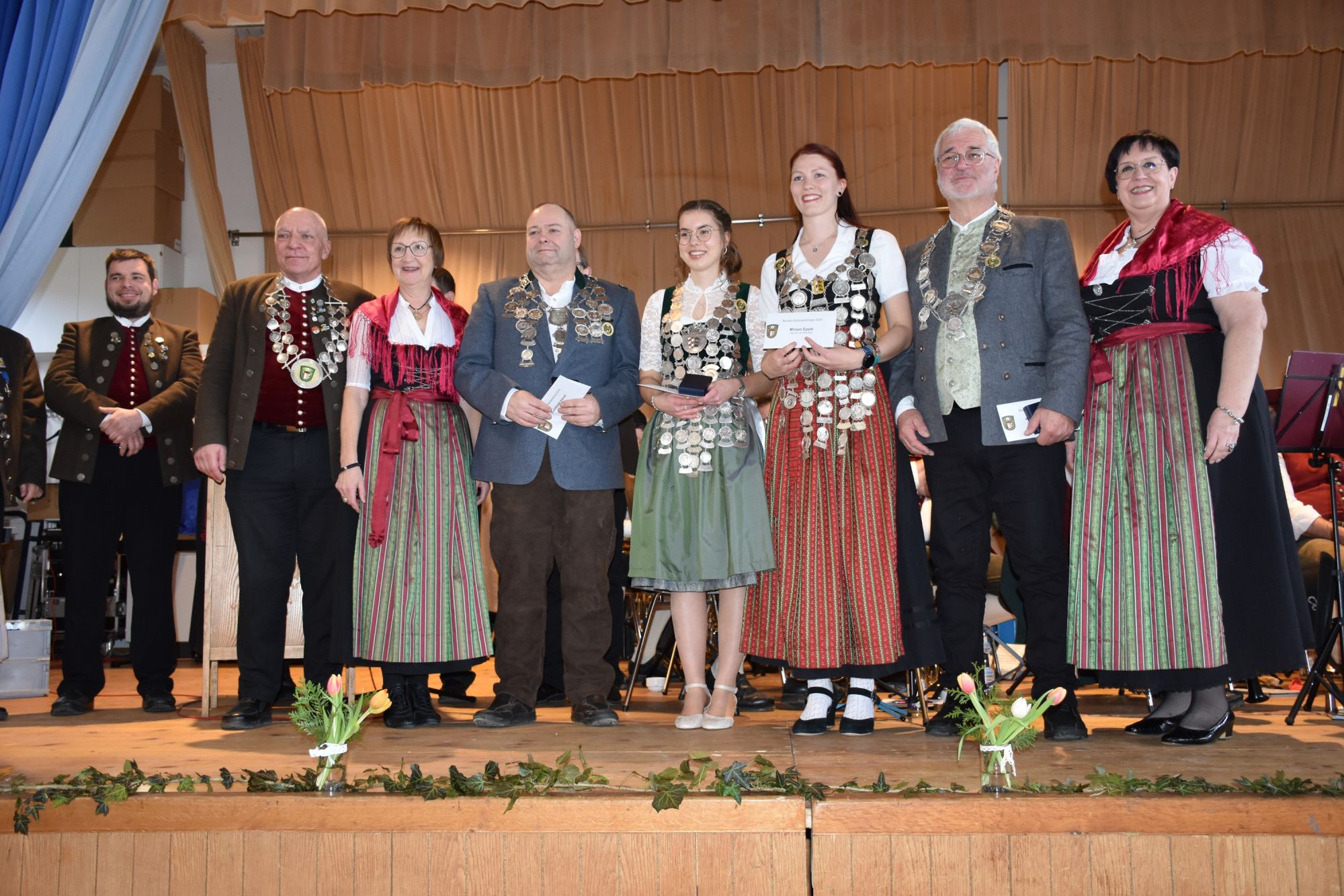 Wertingen, 11.02.2023| An diesem Wochenende fand zum ersten Mal nach der Corona-Pandemie wieder die Proklamation der neuen Schützenkönige statt. Zwei Jahre musste auch diese Feierlichkeit pausiert werden, nun konnten die ehemaligen Schützenkönig:innen von 2019 ihre Regentschaft an die neuen Schützenkönige 2022 übergeben. Organisiert wurde die durchwegs gelungene Veranstaltung vom Gau Wertingen mit seinem Gauschützenmeister Hubert Gerblinger. Die feierliche, aber ebenfalls ausgelassene Stimmung war nicht zuletzt auch der hervorragenden musikalischen Begleitung der Musikkapelle >UNS< mit ihrem Dirigenten Johann Havel zu verdanken, die schon beim Eintreffen alle Gäste musikalisch willkommen hieß.
