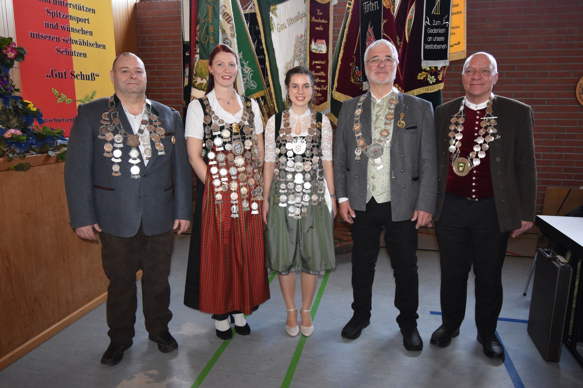 Nach einer kurzen musikalischen Unterbrechung war es an der Zeit die neuen Bezirkskönige zu krönen. Bei den Auflageschützen sicherte sich der austragende Gauschützenmeister Georg Nothelfer vom SV Wendelinus Wangen mit einem 1,0 Teiler den Titel des Bezirksauflagekönigs. Danach folgte die Krönung von Wilhelm Langenmaier vom Hubertus Bronnen der sich mit einem 19,2 Teiler die Königswürde der Luftpistolenschützen sicherte. Bei der Jugend konnte sich Alina Schmid von der Alpenrose Hasberg mit einem 6,9 Teiler den Titel Bezirksjugendkönigin sichern.