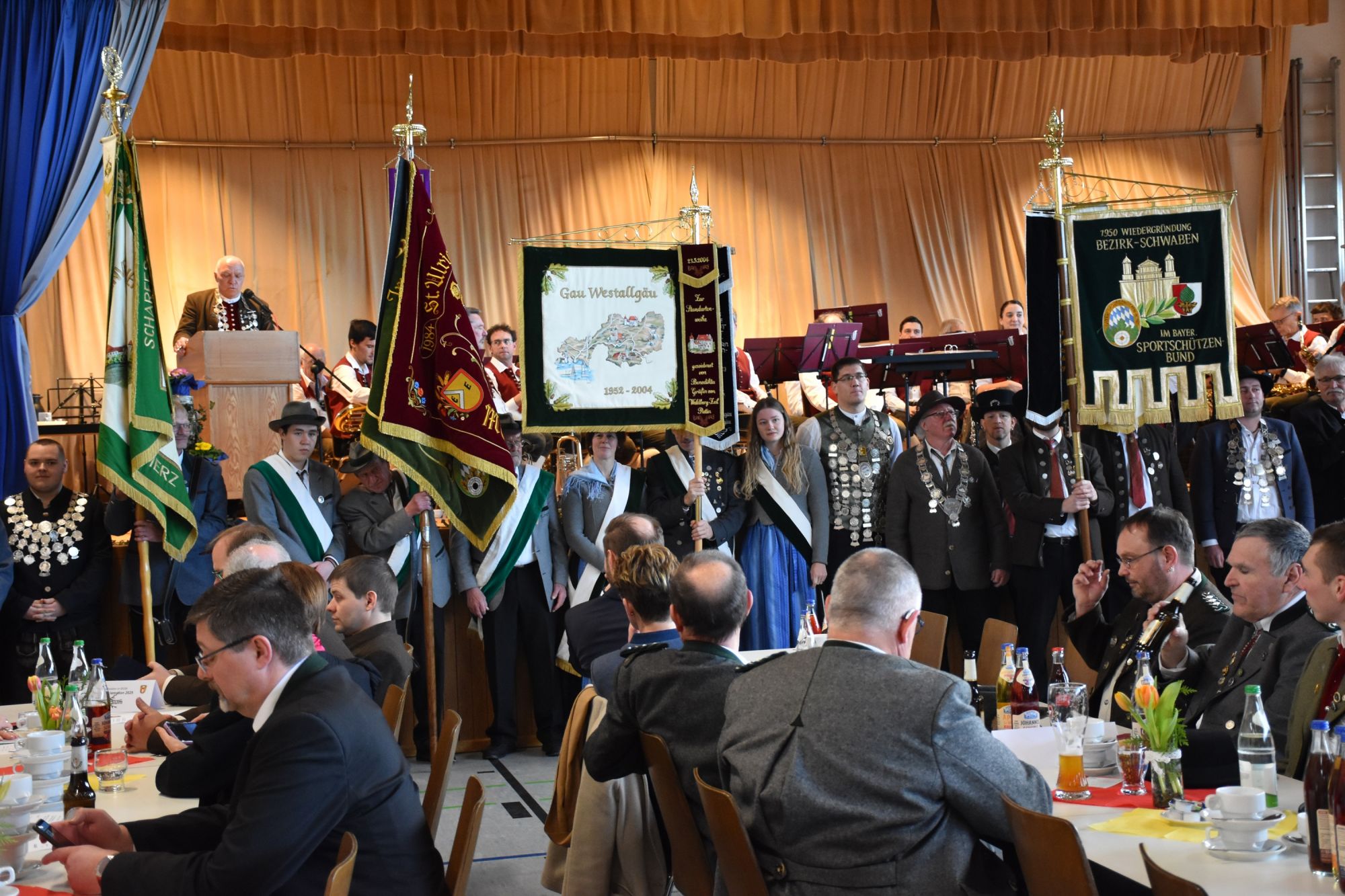 Bei herrlichstem Sonnenschein empfing der diesjährige Gastgeber, die Adlerschützen Herkheim, in der wunderbar geschmückten Löpsinger Turnhalle die zahlreichen Gäste aus ganz Schwaben.