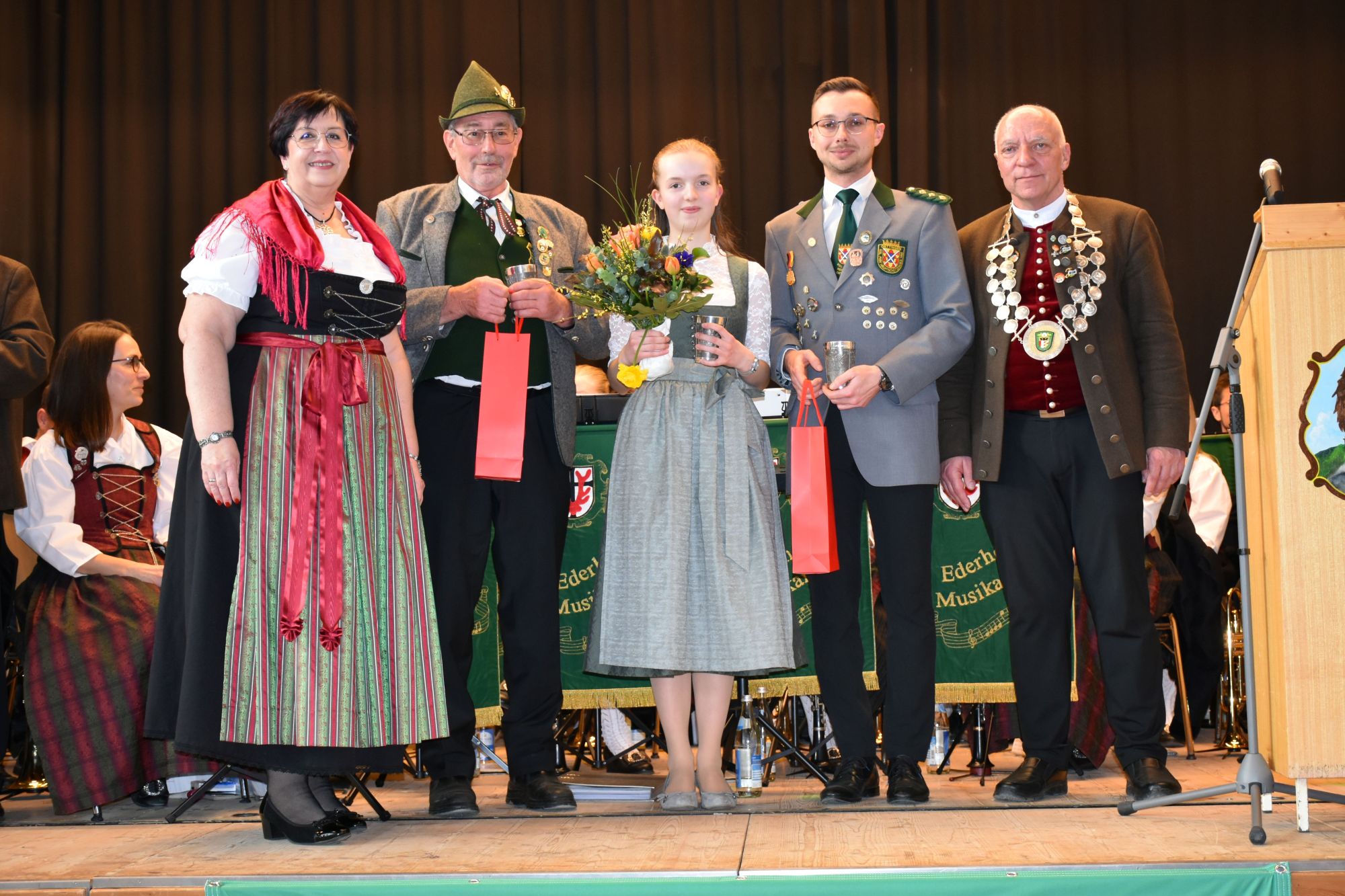 Karl Schnell stellte zuerst Sabrina Brugger vom Hubertus Hörenhausen Gausportleiterin des Gaues Iller-Illertissen vor, die im vorigen Jahr beim Landesschießen auf der Wiesn einen 8,9 Teiler traf und Vize-Landeskönigin wurde. Vom Bezirk Schwaben erhielt sie dafür eine Ehrengabe überreicht.
